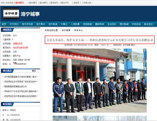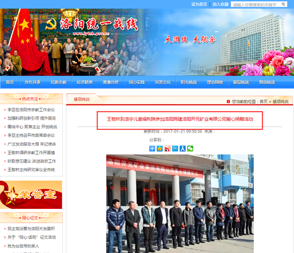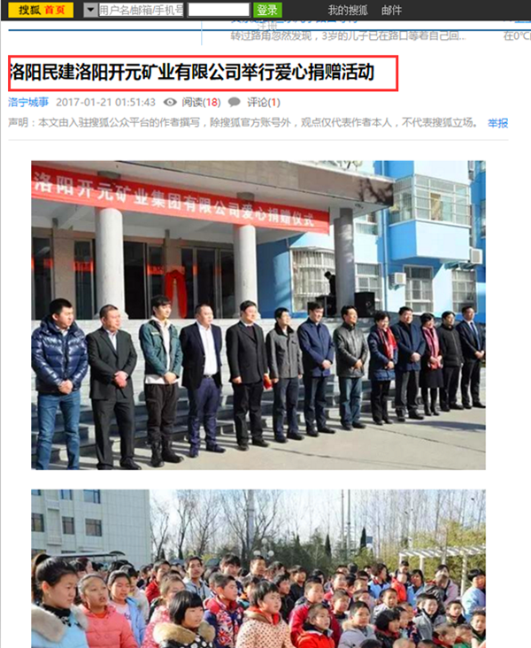 弘揚(yáng)社會(huì)正能量 愛心事業(yè)美名揚(yáng)——洛陽開元礦業(yè)集團(tuán)善舉引起國內(nèi)各大媒體高度關(guān)注