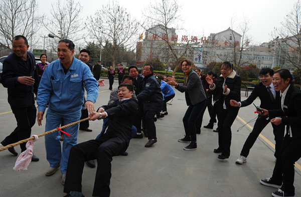 在比賽中,員工團結(jié)互助,拼盡全力,渴望獲得更好的成績;場下人員也紛紛熱情地加油助威,場面十分火爆。單車慢騎考驗了員工的耐力,三人四足和拔河考驗了員工的團結(jié)力,趣味接力考驗了員工的隨機應變的能力等,且每個項目趣味性十足,讓員工十分喜歡。